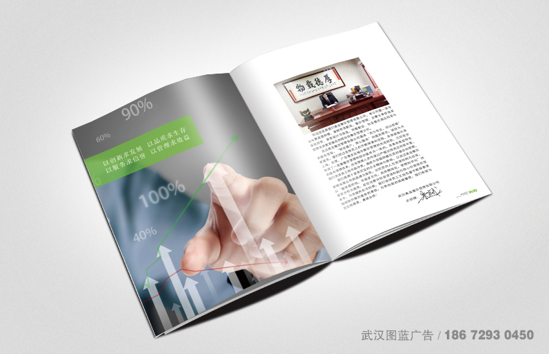 解決方案:圖藍(lán)設(shè)計團隊經(jīng)過對客戶提供的資料進行梳理、討論,最后確定主色調(diào)為綠色,綠色代表健康、朝氣,符合公司的發(fā)展形象;封面采用白珠光紙+logo燙綠金,珠光閃閃,白色又純凈,又帶有貴氣,在白底上的logo燙綠金,更是讓人眼前一亮。扉頁的淡綠色清爽無比。內(nèi)容上劃分成三大版塊,分別是:印象篇,介紹公司文化、資質(zhì)、團隊活動,讓大家對企業(yè)有了初步印象;專注篇,具體展現(xiàn)了企業(yè)的服務(wù)項目、優(yōu)勢、特色、流程及承諾;碩果篇,企業(yè)的合作伙伴、成功案例,以及奧發(fā)寄語,通過這三部分的展示,相信大家都能對企業(yè)有了較全面的了解,合作不就是建立在了解的基礎(chǔ)上嗎!