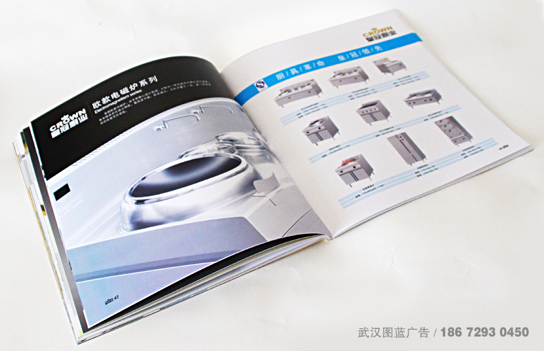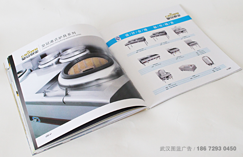 解決方案:圖藍設計在收到客戶資料后,對公司做了詳細了解,武漢皇冠廚業是一家代理公司,但希望畫冊能夠沿用總公司老畫冊,經過設計師的溝通,最終確定在畫冊結構上和體現總公司實力的文字及產品部分保留,但在排版上做調整,特別是形象頁的效果設計,以及封面的設計全部重新做,給人煥然一新的感受。封面采用特種金箔紙壓紋,再加鏤空的創意設計,扉頁的硫酸紙上logo燙銀,從鏤空出躍然紙上,金、銀的完美結合,高貴、大氣,客戶要的高大上不言而喻。圖藍設計-從客戶出發!