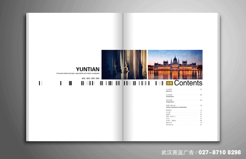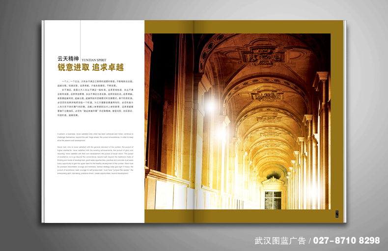 畫冊設計解決方案:在畫冊設計的開始,就要進行策劃,內容如何布局,前后邏輯關系如何呈現,重點表面哪些點?通過對該行業的市場分析,著重把企業的優勢和設備展示出來,通過核心技術、專家團隊來體現出企業的實力。在設計風格上,武漢畫冊設計師進行了大膽的創意,用暗金色系和精致的文字編排形成視覺上的對比,用這種充滿對比性的表現手法突出了工程的特性,但又提升了企業的形象