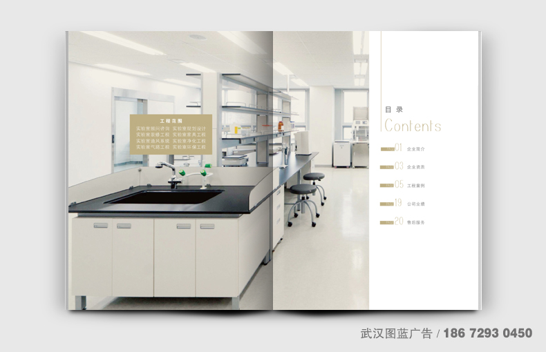 涉及項(xiàng)目:工程案例的現(xiàn)場(chǎng)攝影、實(shí)驗(yàn)室設(shè)備畫冊(cè)設(shè)計(jì)、實(shí)驗(yàn)室設(shè)備畫冊(cè)期印刷制作