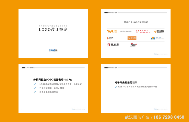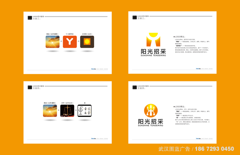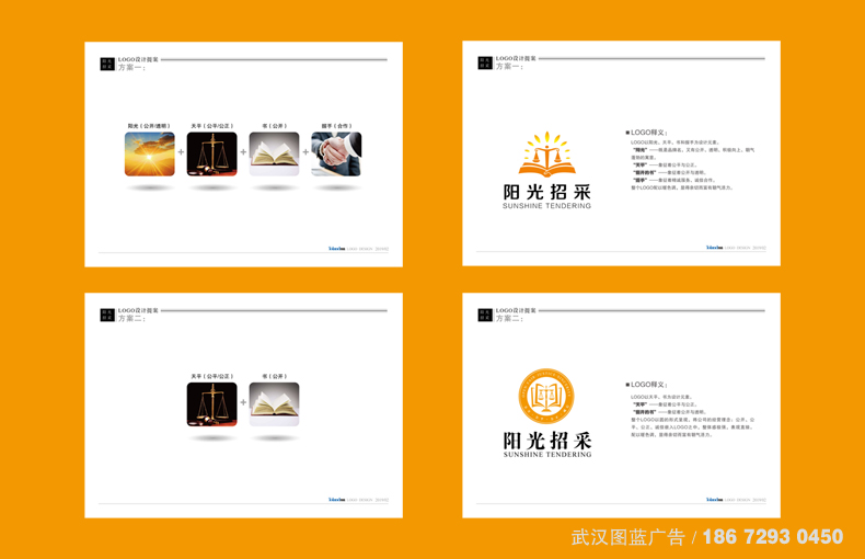 LOGO設計解決方案:武漢圖藍廣告整合了“陽光招采”的品牌訴求,結合市場現狀的分析調查和陽光招采“公平、公正、公開”的品牌內涵,LOGO決定以以天平、書為設計元素。